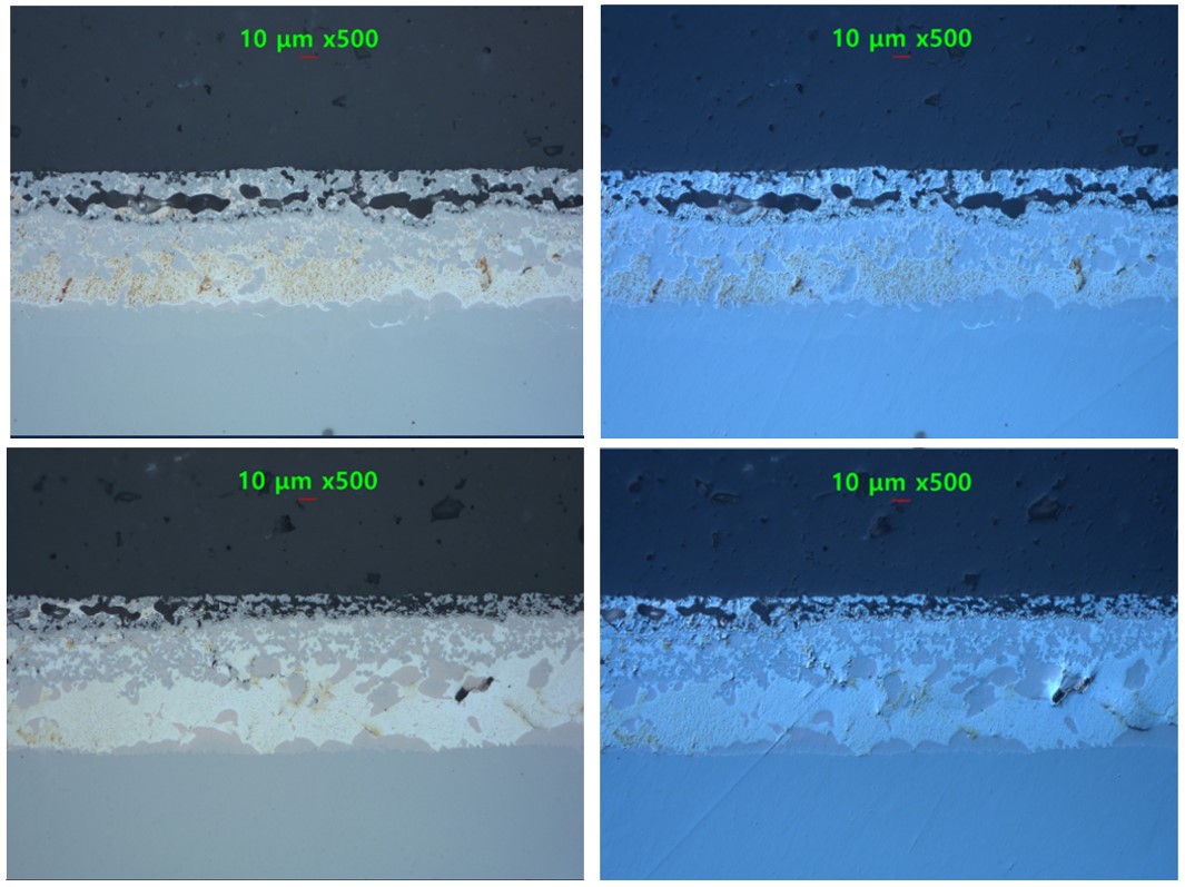 Metal 과 Ceramic 접합 후 Bonding layer 이상 유무를 확인하기 위해 분석 진행 금속 등 경도가 다른 물질을 동시에 분석할 경우에는 단차가 발상하기 쉬워 주의해야 하며 일반적인 제품보다는 FIne Polishing에 적합한 제품을 이용하여야 한다