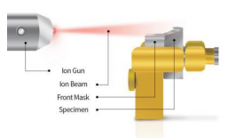 When the sample is placed behind the metal specimen mask and the ion beam is irradiated to the specimen mask and the sample at the same time, the shielding effect of the specimen mask minimizes the beam damage of the sample, resulting in clean cross-sectional etching.